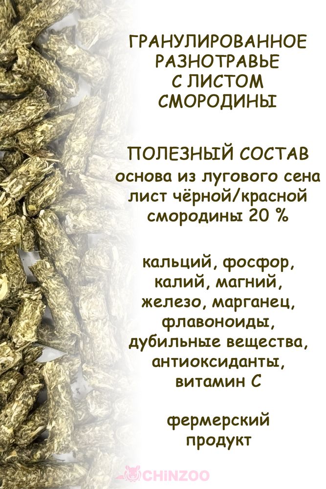 🌾 Гранулированное сено с листом и зелёной веточкой смородины (20%)